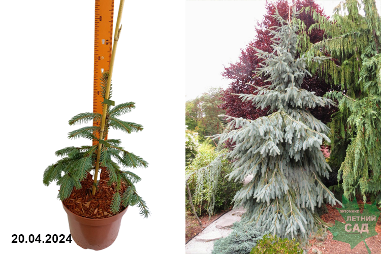 Ель энгельмана Буш Лэйс - довольно рослое, до 4–5 м, стройное дерево с интересной формой кроны и ярко-голубой окраской хвои. Растет быстро, прибавляя до 25 см ежегодно, к 10-ти годам достигая высоты 200-250 см. Центральный проводник может быть прямым или слегка искривленным. Крона нерегулярная, с густыми, изначально приподнятыми, затем поникающими, ветвями. Нижний ярус полностью скрывает ствол и продолжает стелиться по земле. Особенно нарядна ель весной, когда на кончиках ветвей появляются молодые светло-зеленые приросты. Шишки небольшие, коричневые. Культура комфортно себя чувствует на солнечных участках и в лёгкой полутени. На загородных участках ее высаживают отдельно или включают в состав древесно-кустарниковых групп. Красиво смотрятся высокие живые изгороди из стройных голубых елей.