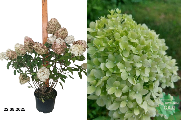 Метелки крупные, плотные, изумительно зелено -лаймового цвета. На солнечном участке или в легкой полутени цветение пышнее и ярче. Рано зацветает и обильно цветет с июня и до заморозков. Сорт зимостоек и нетребовательный в уходе.Благодаря своему компактному росту, гортензии этой серии хорошо смотрятся в низких садовых бордюрах, и очень декаративны в кашпо.