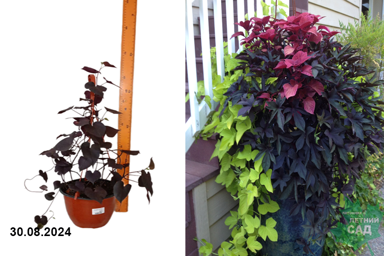 Декоративное красивоцветущее комнатное растение. Вырастает до 30 см, но плети могут достигать 2,5 м. Цветет довольно красивыми пазушными цветками. Листовые пластины представляют собой хорошо расставленные лопасти. Размер листовых пластин приближается к 15 см. Отличительной чертой считается цветовая гамма, представленная самыми интересными пурпурными оттенками. Для посадки подходит универсальный грунт для комнатных культур. Место солнечное. Растение нередко украшает балконы, лоджии и террасы.