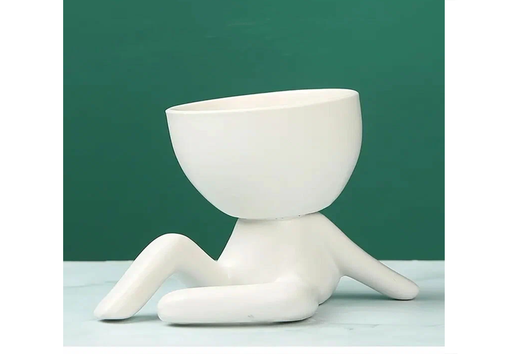 Кашпо для цветов Человечек сидит представляет собой керамическую емкость, которая подходит для выращивания практически любых комнатных растений. Одновременно лаконичная и стильная глянцевая поверхность позволяет сделать горшок с растением отличным украшением для любого помещения. Глазурованная поверхность не впитывает влагу, не покрывается трещинами и сколами. За кашпо легко ухаживать. Любую грязь можно без труда удалить мокрой тряпкой без применения химических средств.