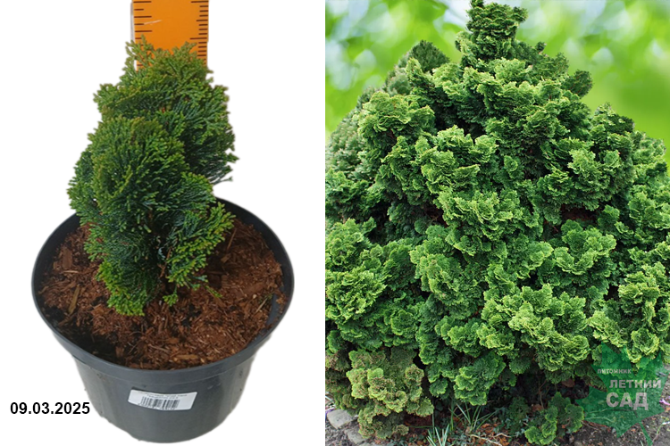 Карликовый очень медленнорастущий кустарник с неправильной ширококонической кроной. В 10 лет достигает 0,5 м высотой. Ветвление плотное, имеет форму скрученной раковины и блестящую, темно-зеленого цвета, хвою. Рекомендуется для каменистых садов.