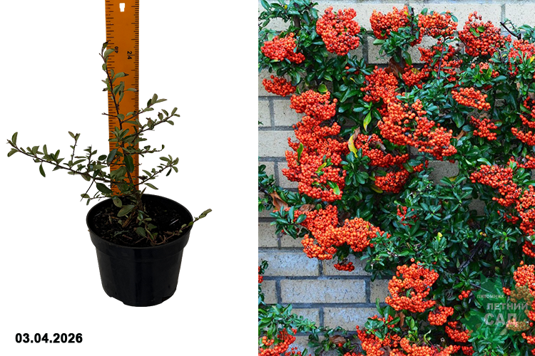 Вечнозелёный, высокий, декоративный, прямостоячий полукустарник, высотой до 4 м и до 5 м в диаметре. Сорт практически бесшипный. Листья овальные, темно-зеленые, длиной до 6 см. Цветение в мае-июне, в течение 3-х недель, белыми цветками в соцветиях. Цветки распускаются в начале лета. Плоды красные, диаметром до 9 мм. Плодоношение продолжительное. Растение хоть и не вьющееся, но закрепляя его побеги можно выращивать на заборах, стенках, арках и других конструкциях, при этом длина плетей может достигать 3-5 метров.