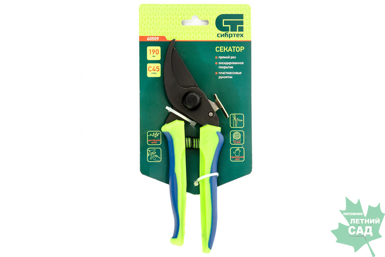 Секатор прямого реза Сибртех Горизонт 60509 длиной 190 мм, с пластиковыми рукоятками, используется для обрезания живых веток толщиной до 12 мм. Режущее лезвие перемещается в параллельной плоскости относительно опорного, что обеспечивает высокое качество реза с минимальным повреждением растения. Плотность примыкания лезвий можно изменить при помощи регулировочного винта. Инструмент пригодится для ухода за растительностью на приусадебном участке.