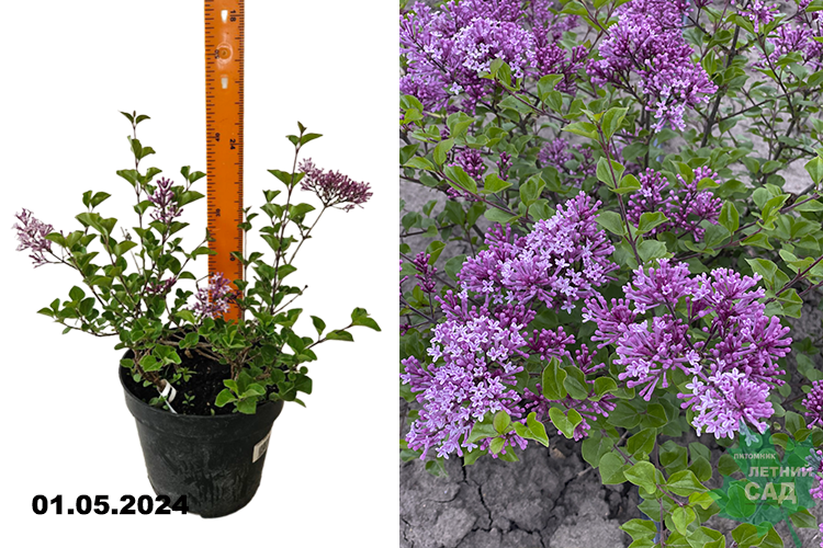 Сирень этого сорта относится к карликовым миниатюрным разновидностям. Максимальная высота взрослого растения 60-80 см. Крона округлая, компактная, может формироваться даже без применения особых обрезок. Молодые побеги имеют тёмный бурый окрас, с возрастом они становятся серо-коричневыми. Листья имеют эллиптическую форму, очень мелкие, сверху темно-зеленые, голые, снизу светлее, вдоль жилок может наблюдаться пушок. Соцветия прямостоячие, некрупные, длиной до 10 см, метельчатые. Бутоны тёмно-фиолетовые, распускаясь, меняют окрас на розово-лиловый с бледно-сиреневыми переливами. Аромат цветов ярко ощутим. Один из немногочисленных сортов ремонтантной сирени. Кроме того, цветёт он дольше, чем прочие разновидности. Первого цветения стоит ожидать в конце мая или начале июня, второго – ближе к концу лета. Хорошо выдерживает морозы. Отлично переносит и засушливый климат. Используется в одиночных и групповых посадках для создания бордюров, кустарниковых миксбордеров, композиций с травянистыми растениями. Можно выращивать такую сирень в контейнерах.