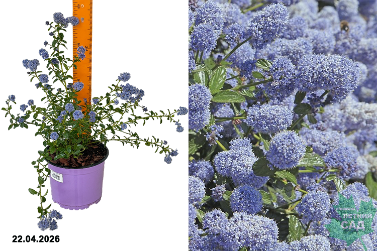 Цеанотус тирсифлорус Репенс называют калифорнийской сиренью за необычность соцветий. Это низкорослый довольно густой кустарник с раскидистыми ветвями, с крупными голубыми соцветиями длиной около 12-15 см, со средне-зеленой листвой. Соцветия формируются на побегах текущего года, поэтому цветет в любом случае, даже если подмерзает в суровые зимы. Цветение длится с мая до начала июля. Любит наиболее теплые, солнечные уголки сада, защищенные от холодных ветров. Растение используется для посадок в бордюры, цветники и контейнеры.