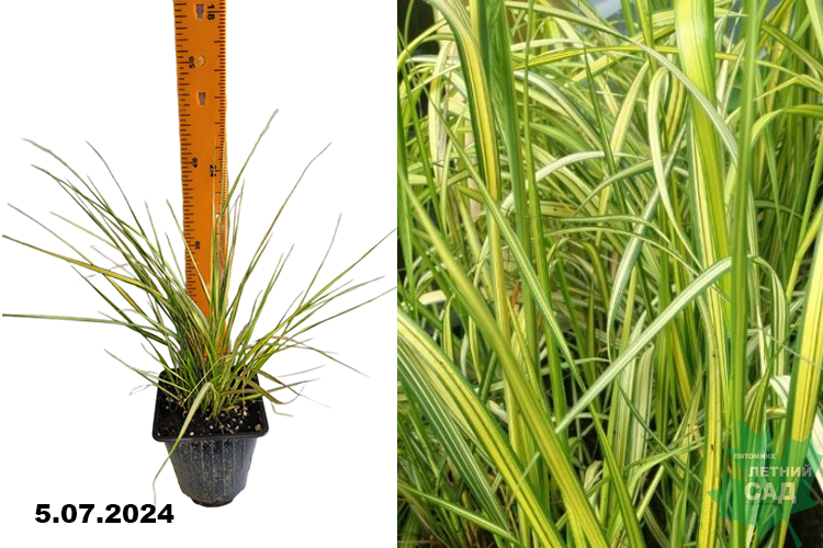 Многолетнее растение высотой до 120 см, шириной 60-70 см. Стебли прямостоячие. Листья зеленые с желтой полосой в центре. Зацветает в июне. Цветки в начале сезона зеленоватые, потом становятся пшеничного цвета. Хорошо растет на солнечных и на тенистых участках. К почве не требователен, но лучше растет на плодородной, рыхлой, хорошо дренированной песчаной или суглинистой почве. Незаменим для садов в пейзажном стиле. Хорош в групповых и одиночных посадках, прекрасно соседствуют с хвойниками. Великолепно подходит для оформления берегов водоемов, может выступать фоном для других декоративно-цветущих и декоративно-лиственных растений.