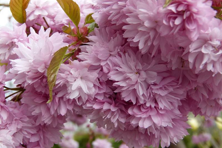 Листопадное небольшое дерево с поникающими, дугообразно свисающими ветвями и нерегулярной кроной. Листья зелёные, блестящие, становятся желто-оранжевыми осенью. Махровые, ароматные, розовые цветки, диаметром 6 см, на длинных цветоножках, собраны в густые соцветия, расположенные вдоль всей длины ветвей. Цветёт в мае. Сакура на штамбе прекрасно подходит для озеленения парков и садов в одиночных и групповых посадках, в качестве солитера. Предпочитает солнечное место, выносит легкую полутень, при хорошем освещении лучше цветет. Устойчива к жаре и солнечным ожогам. Штамб высотой 160-180 см.