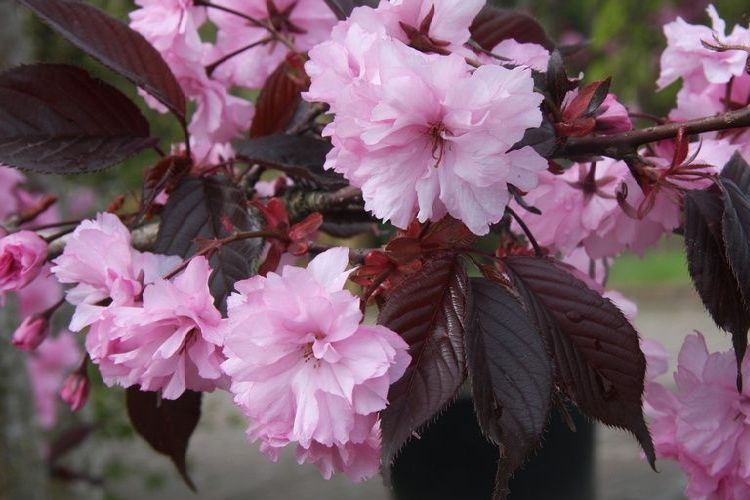Сакуры добавят высоты позади более мелких многолетников. Добавьте декоративно-лиственные растения: