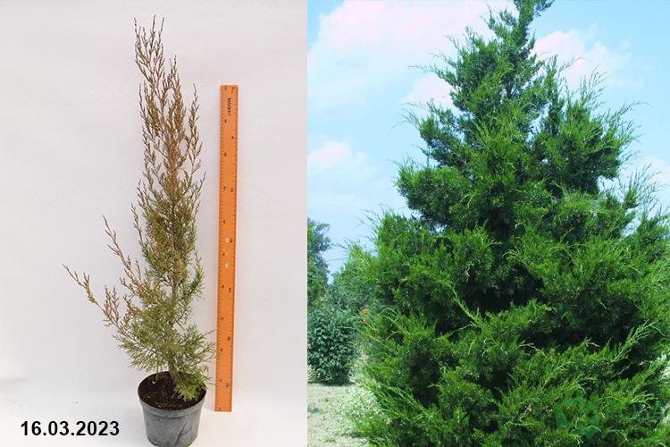 За год прирост – 20 см. К 10-ти годам растение достигает высоты 220 см. Максимальный рост – 6-8 м с кроной 3 м в диаметре. Срок жизни дерева сорта «Канаэрти» – около 500 лет.