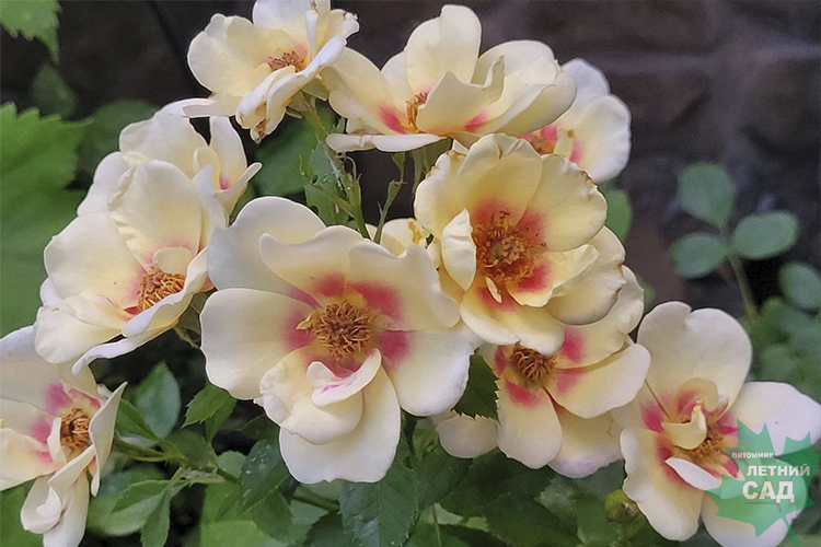Цветение обильное, повторное в течение сезона. Листва устойчивая к заболеваниям. Куст компактный. Розы используются как почвопокровные, бордюрные или для выращивания в контейнерной культуре. Гибриды устойчивы к засушливым условиям и зимним холодам. Цвет бледно-жёлтый с красным пятном в основании лепестков. Количество цветков на стебле 5-8. Размер цветка 5-6 см, простой (4-8 лепестков). Цветение непрерывное, обильное. Высота 50-70 см, в южном климате до 100 см. Ширина 80 см.