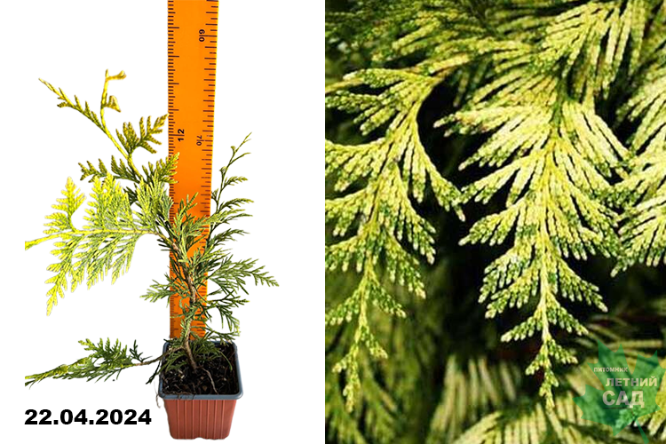 Ветви отстоящие друг от друга, концы побегов слегка повислые. Хвоя очень декоративная, темно-зеленая, с золотистым оттенком, зимой желтые оттенки усиливаются.